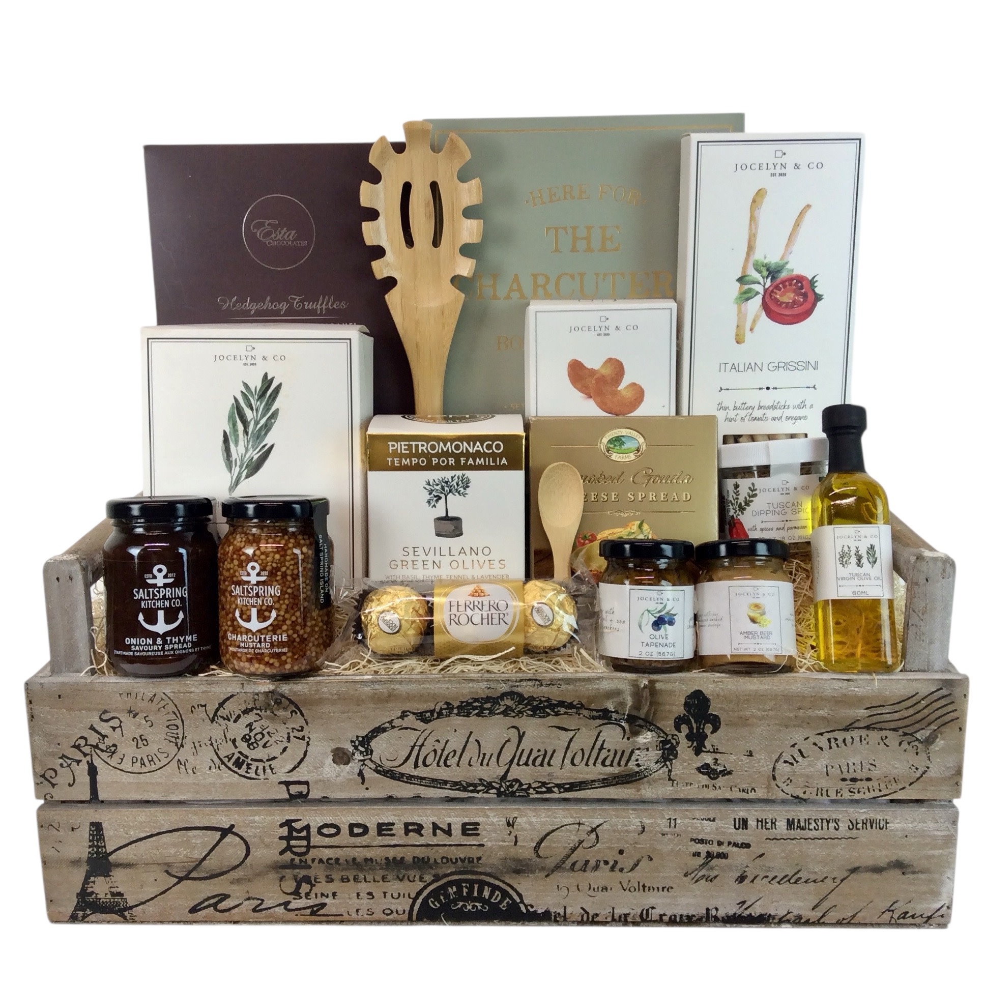 Presented in a wooden crate, perfect for On The Go Charcuterie!